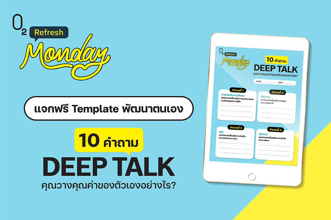 O2 Refresh Monday แจกฟรี Template พัฒนาตนเอง 10 คำถาม DEEP TALK คุณวางคุณค่าของตัวเองอย่างไร?